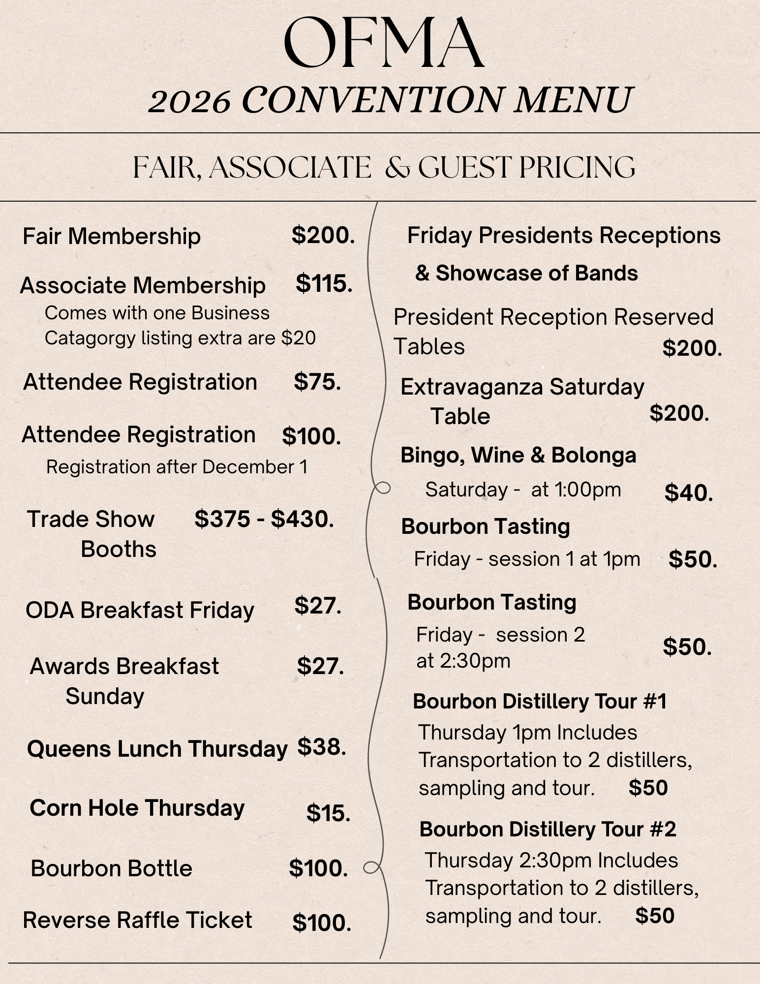 Welcome to our new system of registering for the annual convention. This system once your login is made will retain your information. Please see information about each group we offer registration too and follow the instructions. Please note that we will not take any type of paper registration and all registration must be paid online by credit card or by ACH bank draft. FOR SYSTEM SUPPORT PLEASE EMAIL OFMASPECIALEVENTS@GMAIL.COM